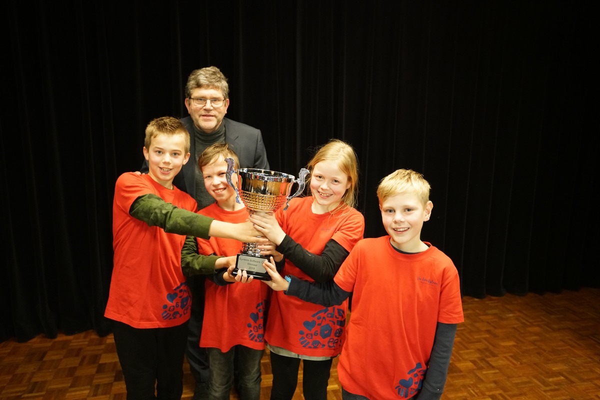 In de onderbouw was de eerste prijs voor team 4 van De Hoeksteen. Deze winnaars hebben zich daarmee geplaatst voor het Nederlands Kampioenschap voor scholieren teams, wat in juni plaats zal vinden.