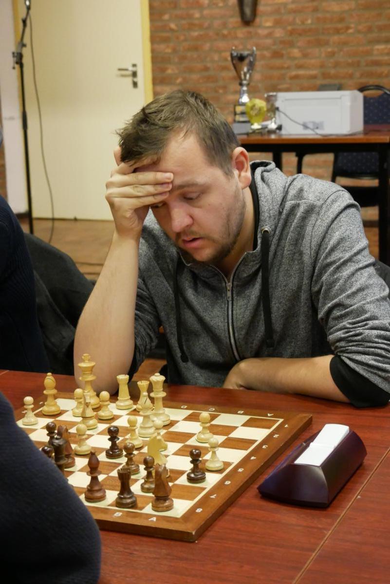 img-20161030-wa0001In groep 1 lieten de ratingfavorieten er geen gras over groeien en draaiden voortdurend mee in de top. Na drie ronden stond Dgebuadze alleen bovenaan met een 100%-score, maar in de vierde ronde wist hij ternauwernood remise te maken tegen Stefan Bekker. Ook in de vijfde ronde kwam hij niet verder dan remise tegen Tobias Kabos. Bekker kwam hiermee op gelijke hoogte met Dgebuadze met Kabos op een half punt achterstand. In de zesde ronde wisten ze alle drie hun partij te winnen zodat het kampioenschap pas werd beslist in de laatste ronde. In die laatste ronde ging Bekker in een gierend tijdnoodduel onderuit tegen oud-kampioen Jesper Nederlof die daarmee op een knappe vierde plaats eindigde.