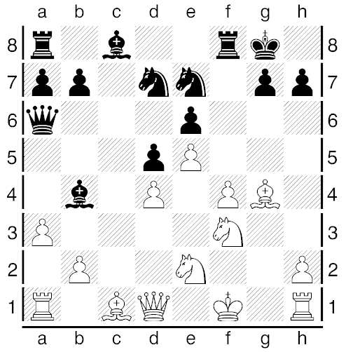 In de zesde ronde kregen de grootmeesters het toch voor elkaar. Orlov en Fridman wonnen respectievelijk van Van der Hoeven en Merkx en Dgebuadze wist in een Franse opening van medekoploper Vonk te winnen. Dat ging naar de mening van Vonk niet zonder slag of stoot. De 16e zet bleek cruciaal (zie onderstaand diagram na 15…., Pe7):